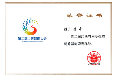 被授予单位或个人:南昌云博(中国)环保科技股份有限公司